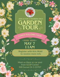 - Car pools will be set up from GCSP Garden Center (500 Sunset Dr. S)